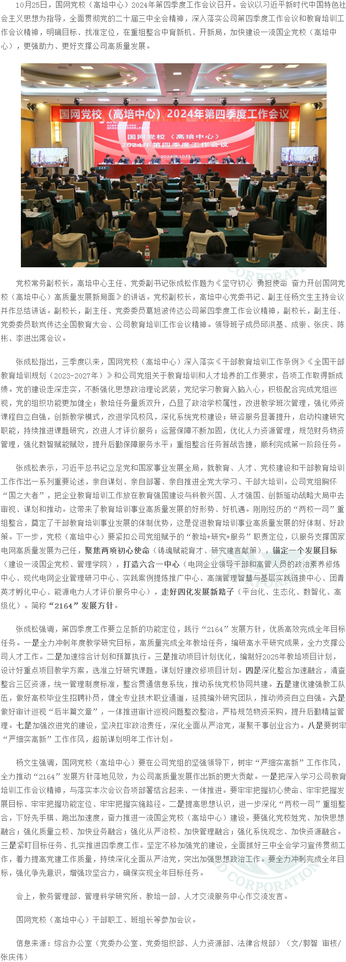 國網黨校(高培中心)召開2024年第四季度工作會議