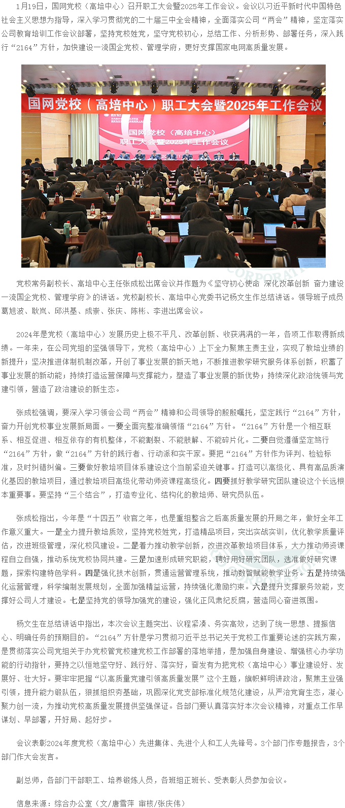 國網黨校(高培中心)職工大會暨2025年工作會議召開
